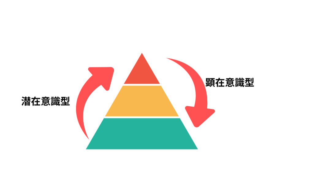 顕在意識型:顕在意識の意識によって、潜在意識を引っ張りこむことがその場でできてしまう。